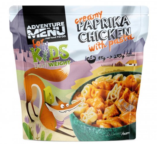 Kuřecí prsa (28 %), pšeničné těstoviny (22 %) (semolina, voda), smetana (20 %), cibule bílá, máslo, rajský protlak (rajčata, sůl, cukr), kuřecí vývar, olej řepkový, mouka kukuřičná, mouka rýžová, česnek, citrónová šťáva, sladká paprika, pepř, sůl.